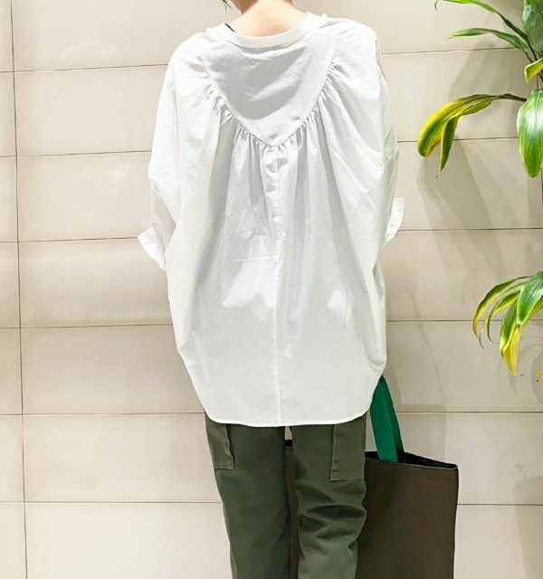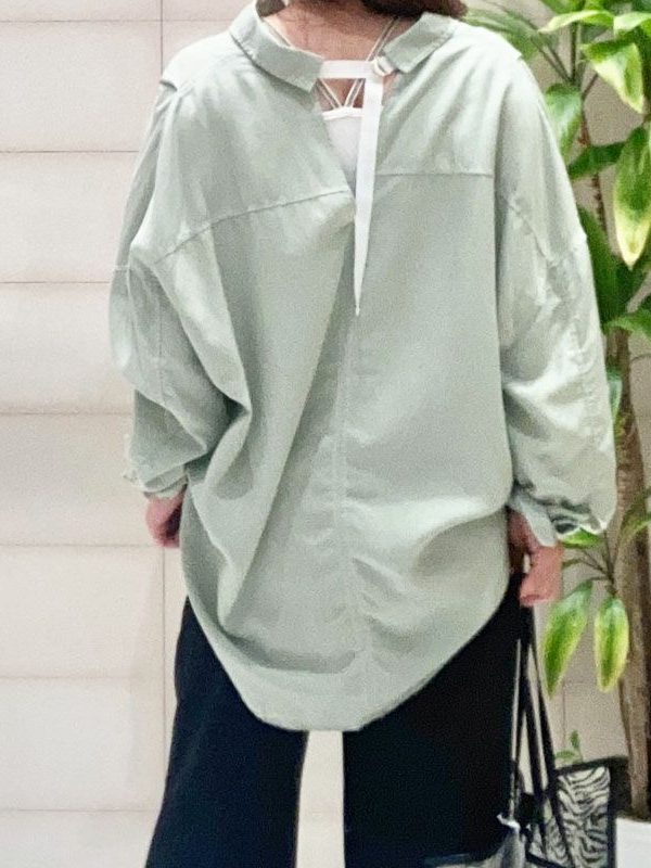 ゆるっとしたオーバーシルエットのシャツをぬき襟にしてこなれ感を出します。