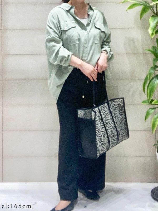 ゼブラ柄の大きめバッグをアクセントにしています。