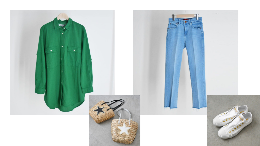 鮮やかグリーンシャツコーディネート