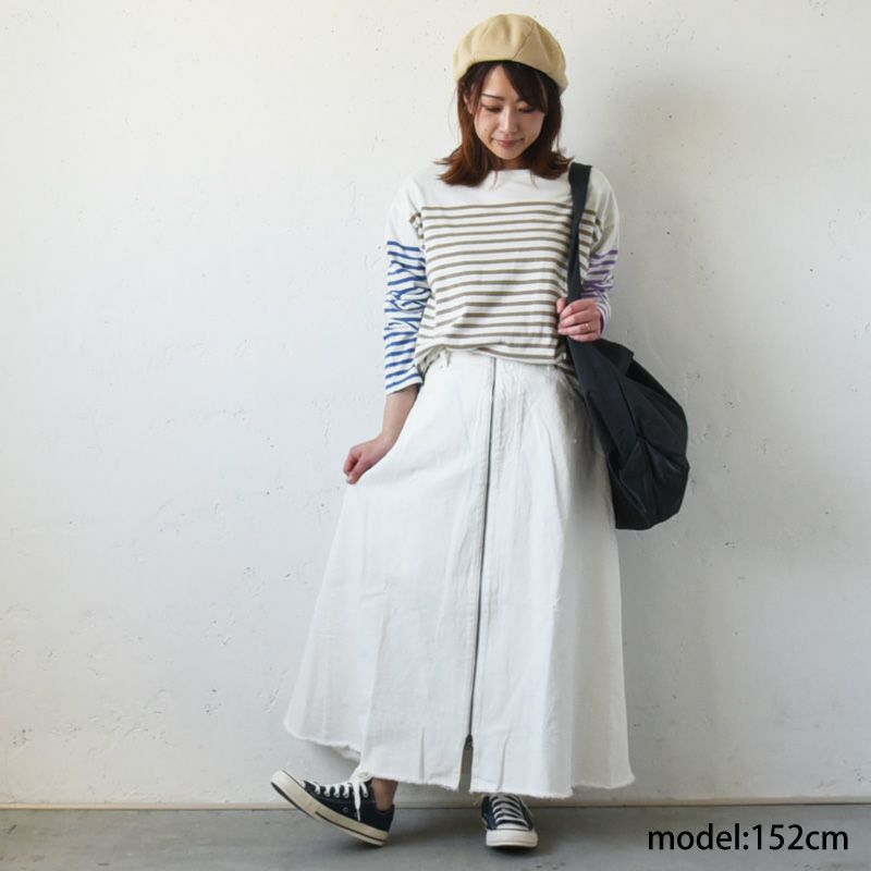 合わせるトップスが、何色でも似合う万能なホワイトスカート。