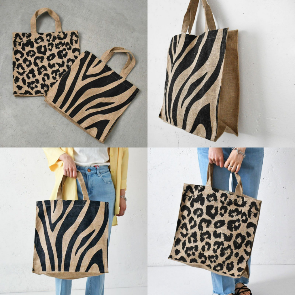 強めな印象があるアニマル柄はジュート素材にすることで、カジュアル感が増しコーディネートに取り入れやすくなります。