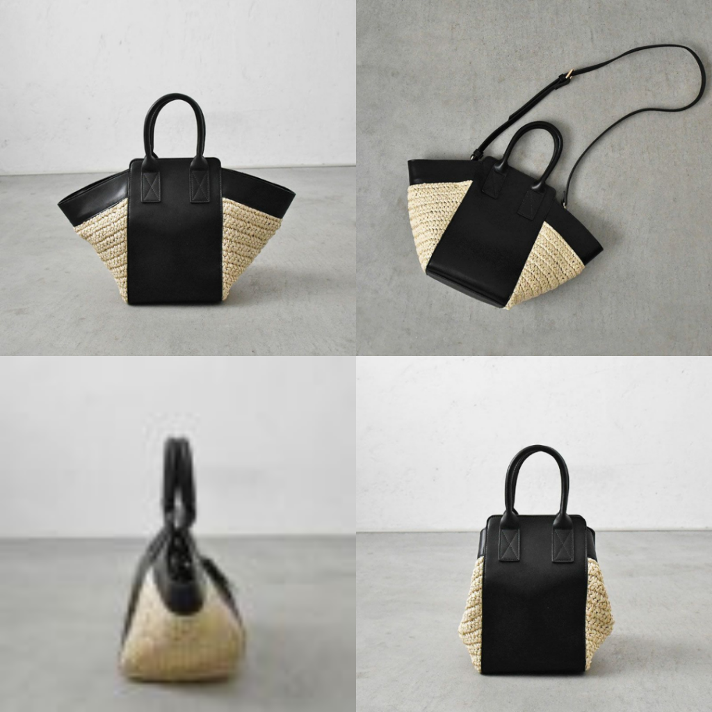 ブラックの面積が多めなカゴバッグは大人っぽく決まる優秀アイテム。