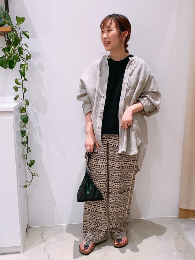 オーバーサイズシャツ×民族調柄ワイドパンツコーデ