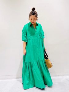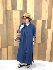 こちらのシャツワンピースは、重めの色ですがリネン混で素材は春夏にぴったり。