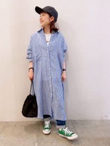 着用アイテム:IN THE MARKET|ストライプ柄リネンシャツワンピース [[C-2059]][C]