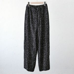 モノトーンのドット柄がスタイリッシュな印象のパンツは、落ち感が大人っぽくストレスフリーでスタイリングできるアイテム。
