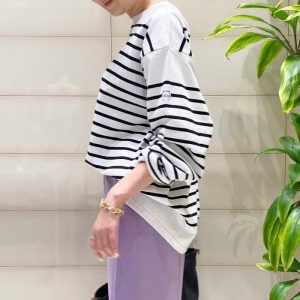 このようなイメージのボーダーですが、ボトムスによって大人っぽいスタイリングにすることができますね。