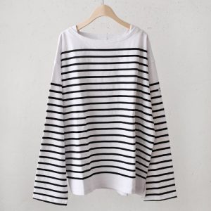 また、定番のボーダーではなく白の分量が多いアイテムを選ぶことで子どもっぽさが薄くなるのではないでしょうか。