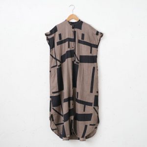 CALINER|幾何学プリントスタンド衿シャツワンピース