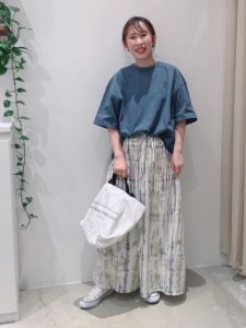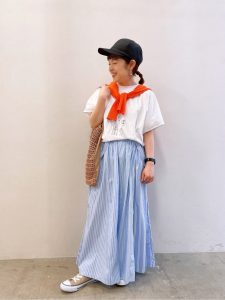 トップスもブルーのアイテムを合わせる事で季節感が増して夏のおしゃれコーデに仕上がるんです。