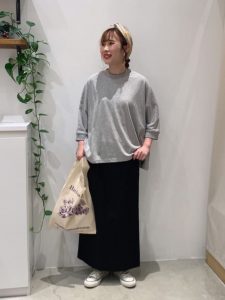 キレイめに着こなす場合はベーシックな色のスカートを合わせると良いですね。