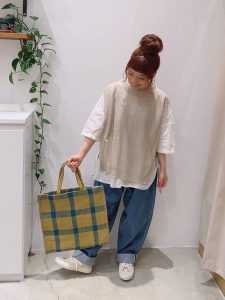 デニムでもカジュアル過ぎないようにベストや白いシャツを合わせると、程よくキレイめで大人ナチュラルな印象になります。