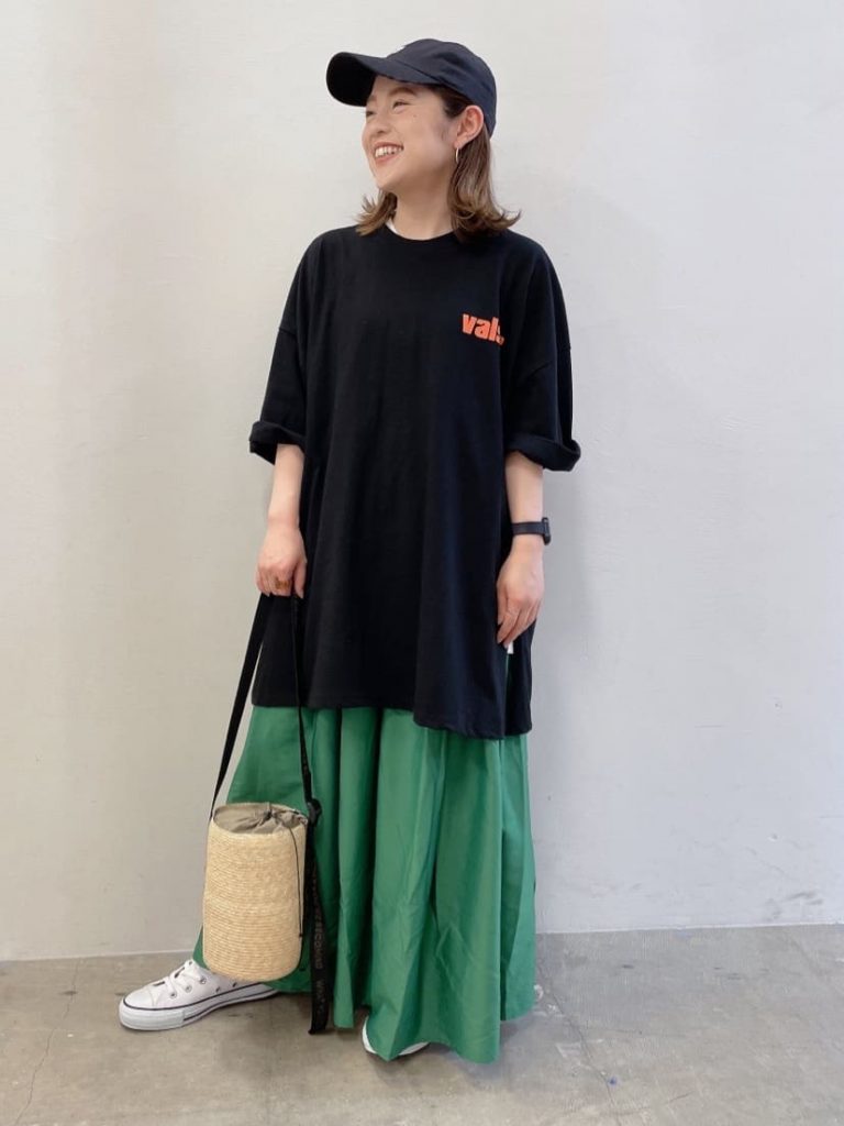 上下ともにゆったりサイズのアイテムを合わせたスタイルは、低身長さんならではの「大きめ感」がとってもかわいい◎