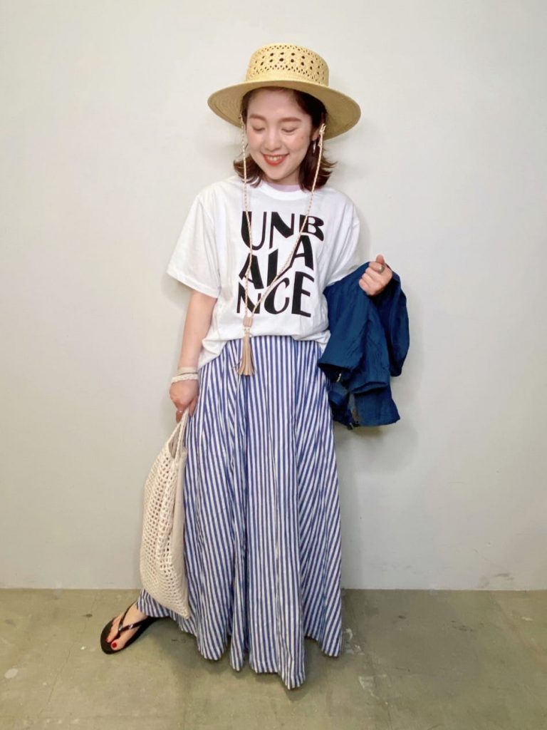 ストライプスカート×ロゴTがかわいい!さわやか夏フェススタイル