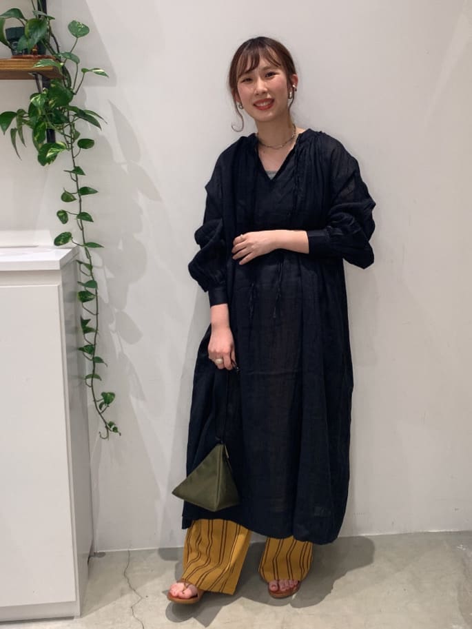 1枚で着られないワンピースは、ワイドパンツ合わせならリラックス感を失わずに着こなせますね。