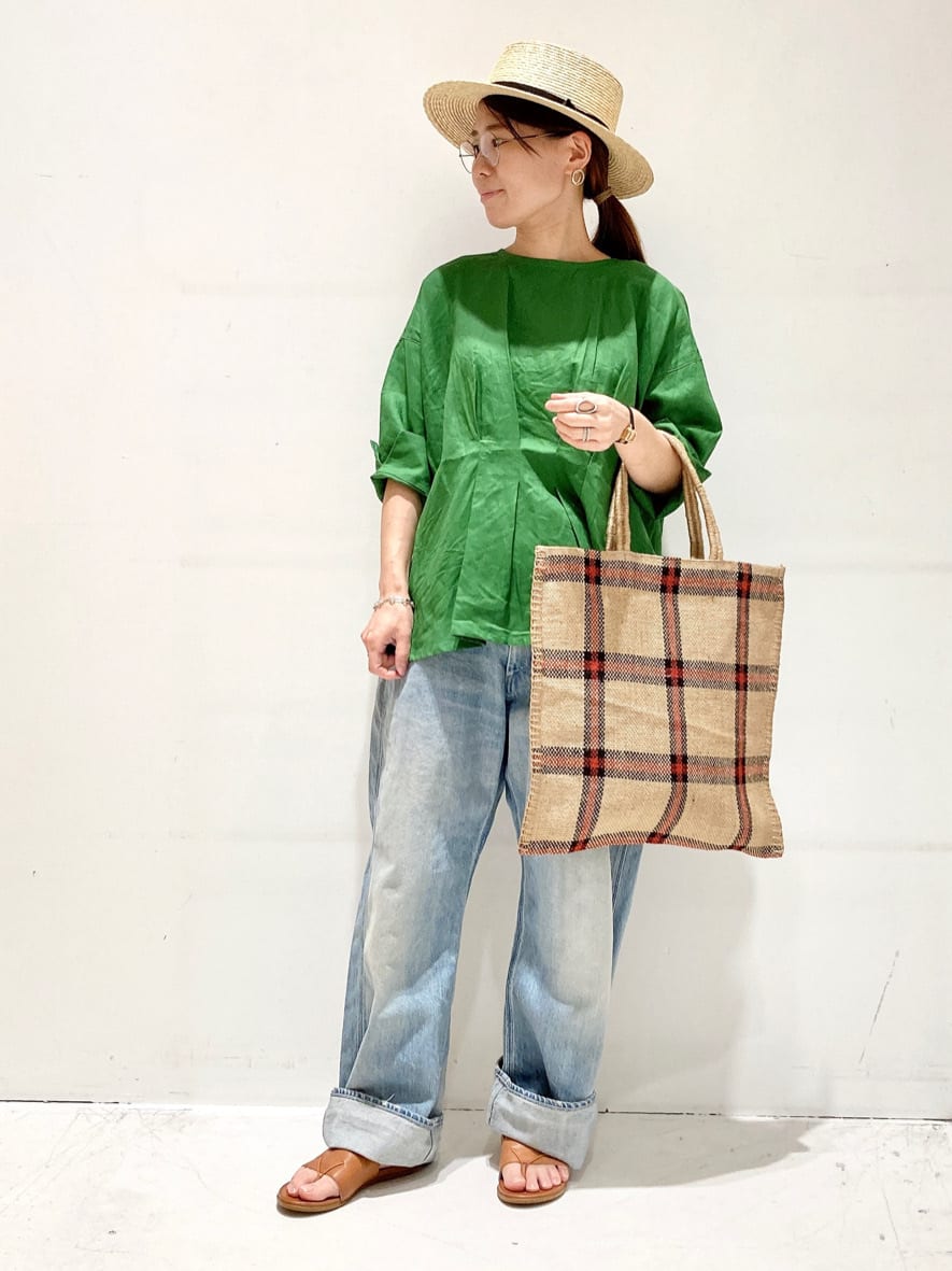 暖かい日差しに映えそうなグリーンに、ジュートバックやハットが明るいイメージ醸し出してくれます。