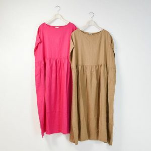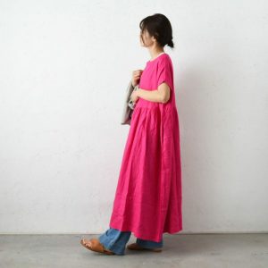 長袖ワンピースも、リネンやコットンのような肌触りのよい素材は快適に過ごすことができます。