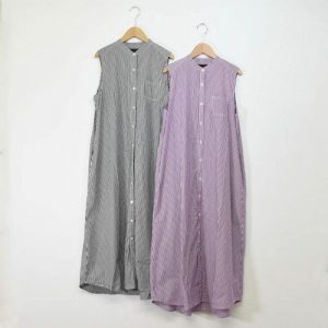 ストライプ柄が、爽やかなイメージのノースリーブワンピースです。