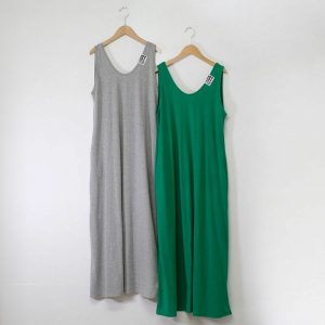 ワンピースは、グレーとグリーンの2色展開。