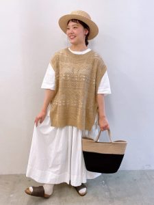 ホワイトコーデ×ニットベスト
