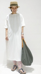 シンプルなワンピースは、夏のコーデで大活躍のアイテムです。
