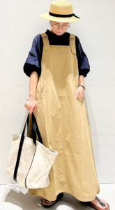 ロング丈のジャンパースカートは、今すぐ着られて秋までたくさん着回せるアイテム。
