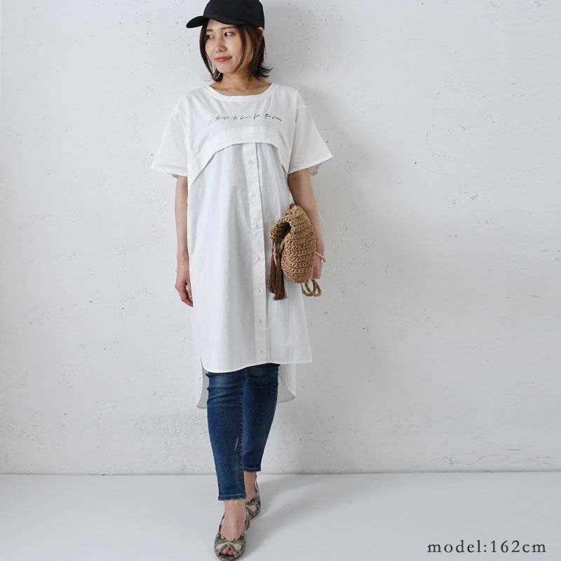ロゴTシャツ×シャツを組み合わせたようなリメイク風のドッキングデザインによって、身に着けるだけでもフレッシュなおしゃれを叶えてくれるチュニック。後ろ着丈を長めにしてあるので、サイドからのシルエットに抜け感を見せてくれそう。秋になったらアウターを組み合わせて、インナーとしても着映えするおすすめの一着。白いチュニックにブルーのスキニーデニムを組み合わせた、気負わないオフの装いに。キャップを被ったスポーティーなカジュアルスタイルに、パイソン柄のパンプスで辛口スパイスを効かせて、おしゃれを格上げ。