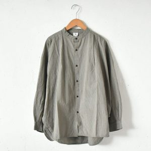 こちらはダスティな色合いが魅力的な、グリーンカラーのシャツ。