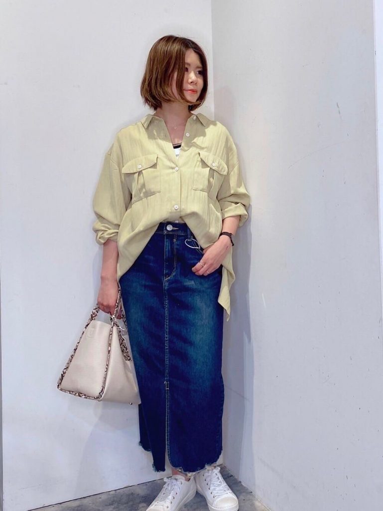 オーバーサイズミリタリーシャツ×デニムタイトスカートコーデ