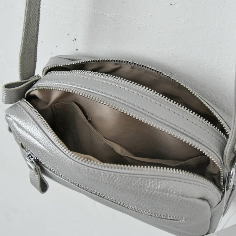 2-3.定番の牛革小ぶりバッグはシルバーでシャイニーにきめる