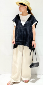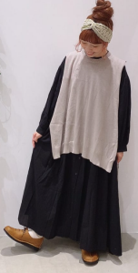 秋の定番・ニットベストもおすすめですが、リネン素材のベストもこなれ感があって素敵です。