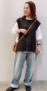カジュアルに!前開きタイプのベストを使ったコーデ