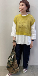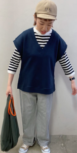 ベストの素材はコットン100%なので、季節を問わず着られてとっても扱いやすいですよ。