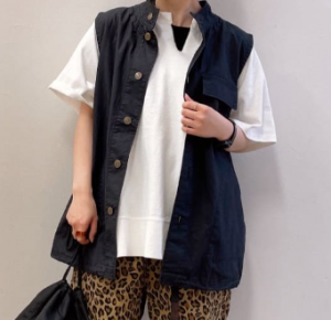 Tシャツとワイドパンツのようなリラックスコーデにベストを一枚重ねるだけで、