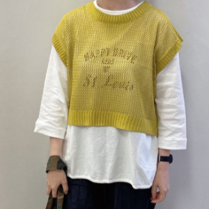 シャツ、カットソー、ワンピースなど、いろんなアイテムと合わせられるベストです。