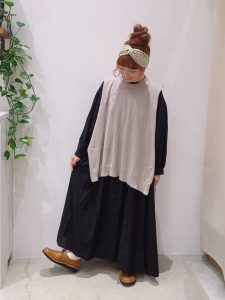 ゆったりワンピ×ゆったりベストでナチュラルコーデ