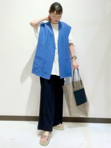 コットンリネンのベストはオールシーズン使えるので、着まわし力が抜群なのもポイントです。