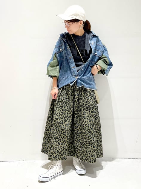 レオパード柄を大人女子が着るなら、断然ロングスカートで取り入れるのがおすすめ。