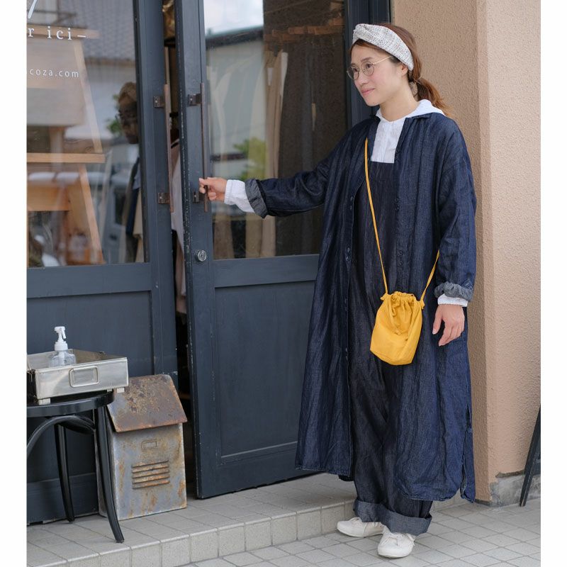 コットンリネン素材を使っているライトデニムシャツワンピースは、ロングシーズンで活躍してくれるアイテム。オープンカラーやウエストマークできるリボン紐が付いているので、コーデのアレンジを広げてくれる一面もポイント。デニムサロペットパンツをレイヤードしたセットアップ風の組み合わせで、大人可愛い秋のカジュアルコーデを叶えて。カラートーンを抑えたコーデにイエローのショルダーバッグを差し色に、遊びゴコロのあるおしゃれができあがり。