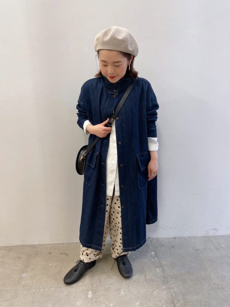 デニムブリティッシュコート×ドット柄ワイドパンツコーデ