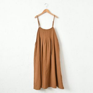 前後で異なるタックデザインを施していて、身に着けるだけでもシルエットに立体感を与える人気のキャミワンピース。裾に向かって広がるフレアラインによって、フェミニンな印象を見せてくれるでしょう。ウールブレンド素材を使っているので、秋冬コーデに使うと快適に過ごせそう。長さの調整ができる細めのストラップがアクセントになり、フェミニンなおしゃれを楽しめるワンピースです。キャメルカラーのナチュラルな色合いで、着回し力の高い優れもの。