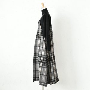 大胆なチェック柄をあしらったキャミワンピースは、いつものコーデを脱マンネリに導いてくれる存在感のあるアイテムです。主役級のデザインですがブラックベースのモノトーン配色なので、着回し力の高さも人気のポイントになっています。ウールブレンド素材を使っているので、秋冬コーデに快適さをもたらしてくれそうですね。長さの調整ができる細めのストラップがアクセントになり、身に着けるだけでも華奢でフェミニンな印象を引き出せそう。