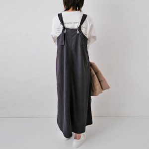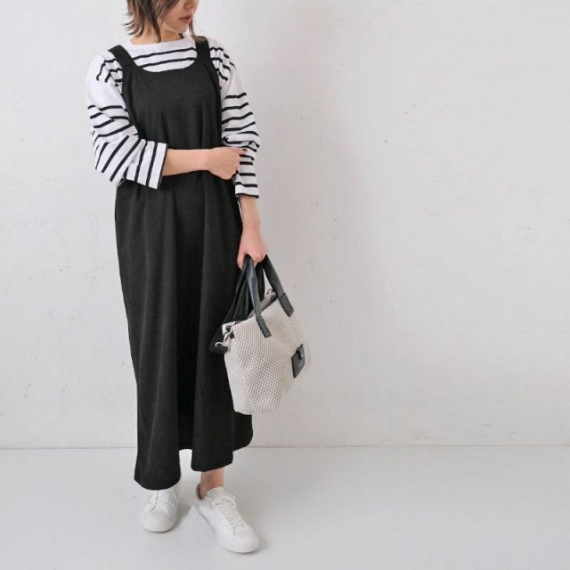インナーやアウター次第でアレンジ広がる!ストラップロングワンピース
