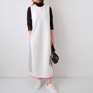 程よく厚手の素材に裏起毛素材を使っていて、秋冬コーデに着心地の良さを与えるスウェットワンピース。サイドの切り替えデザインと配色ラインが存在感を発揮していて、いつものオフコーデを新鮮にアップデートできるでしょう。ストンとしたIラインシルエットなので、スタイルアップを叶えてくれる一面も備えています。ホワイト・グレーのベーシックなモノトーンに赤い配色が効いていて、さり気ないオリジナリティを演出できる主役級のアイテムです。