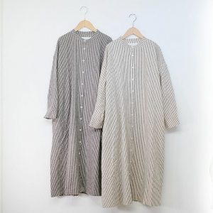 スッキリとしたラインを描く!ストリアぷ柄のシャツワンピース
