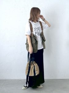 こんな時、ロゴデザインのアイテムを選ぶことでスタイリッシュな雰囲気を手軽に楽しめますよ。スポーツコーデは、アクティブに動くことができるスタイルのひとつです。コーディネートによっては、カジュアル感が強くなってしまうのが悩みですね。ロゴTシャツを使ったコーディネートを楽しみたい時には、カラーの選び方や少し綺麗めなアイテムとスタイリングしてみるだけで大人っぽいイメージに仕上げることができるのでおすすめですよ。