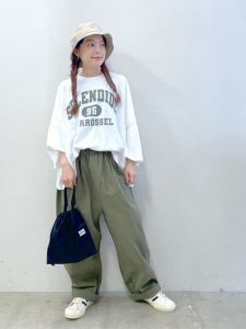 着丈が長く裾の部分が気になってしまう時には、裾をシェイプしてスタイリングすることで問題が解決されますね。コーディネートによって、裾を絞たりすることで幅広いスタイルに仕上げて楽しむことができます。例えばボリュームソールのスニーカーなどの場合、裾を絞ることなくゆるっとしたシルエットで楽しんでみるのもおすすめのコーディネートとなるのではないでしょうか。これからの季節、幅広いスタイルを楽しむことができるボトムスです。