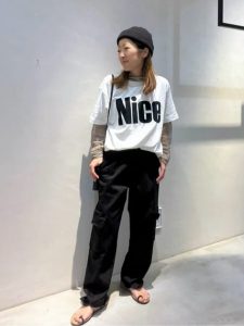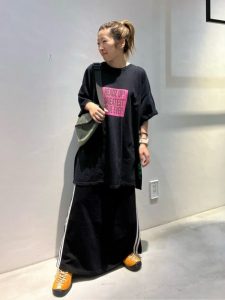 1-3.ゆるっとシルエットがこなれ感につなげてくれるロゴカットソーはモノトーンがおすすめ