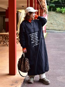 メインのアイテムは、ロゴ入りの「アノラックワンピース」で、スポーティさとストリート感を演出しています。