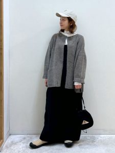 暖かみのある素材や色使いが幅広い年齢層にマッチする着こなしとなっています。